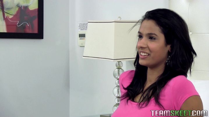 Admirable beauty Karmen Bella seductively strips her dress before riding the shaft